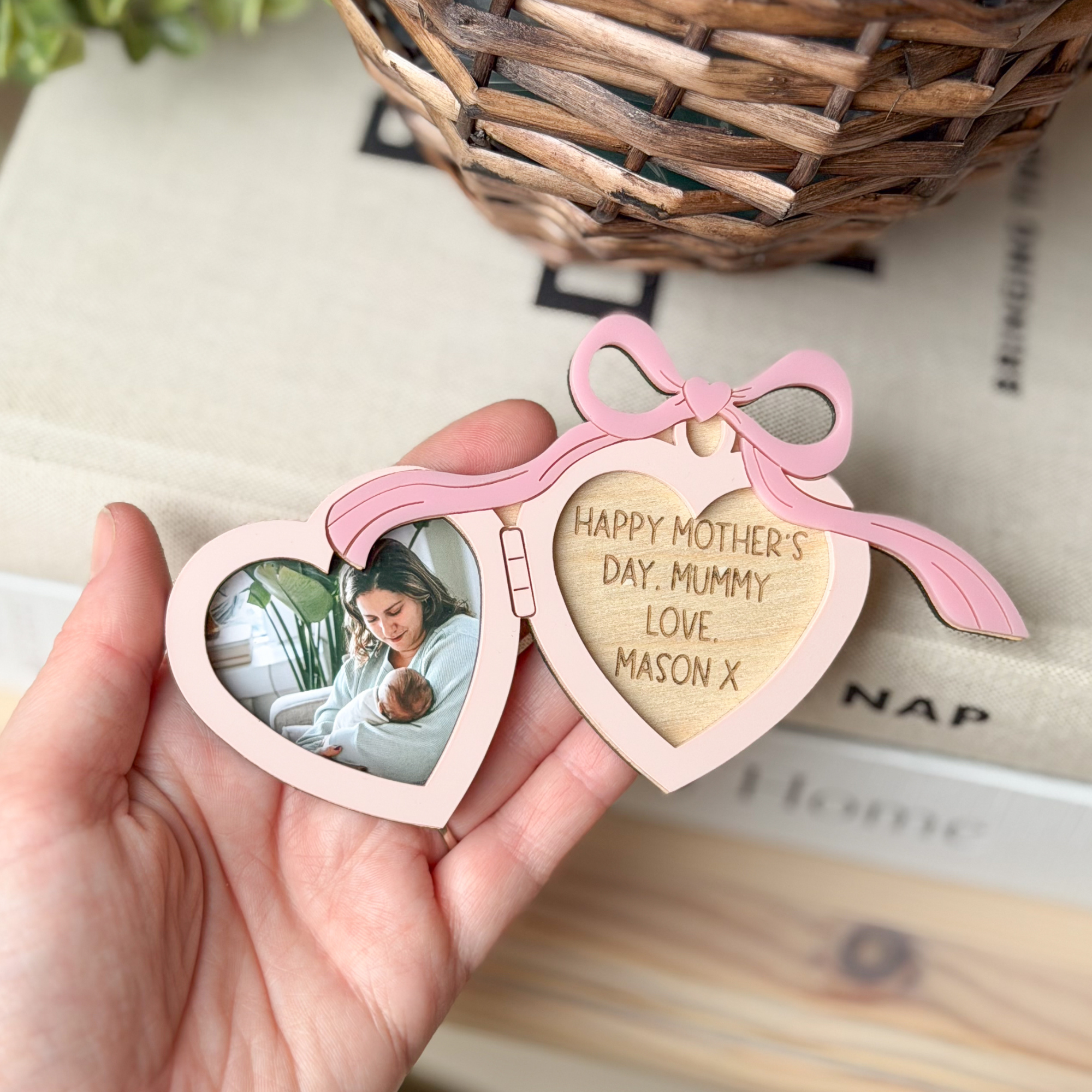Designed to look like a classic vintage locket opened wide, this heart-shaped custom keepsake features a space for your favourite photograph on one side and a deeply engraved personal message on the other. It is a truly sentimental gift and a beautiful anniversary gift for a girlfriend, wife, or new mother.